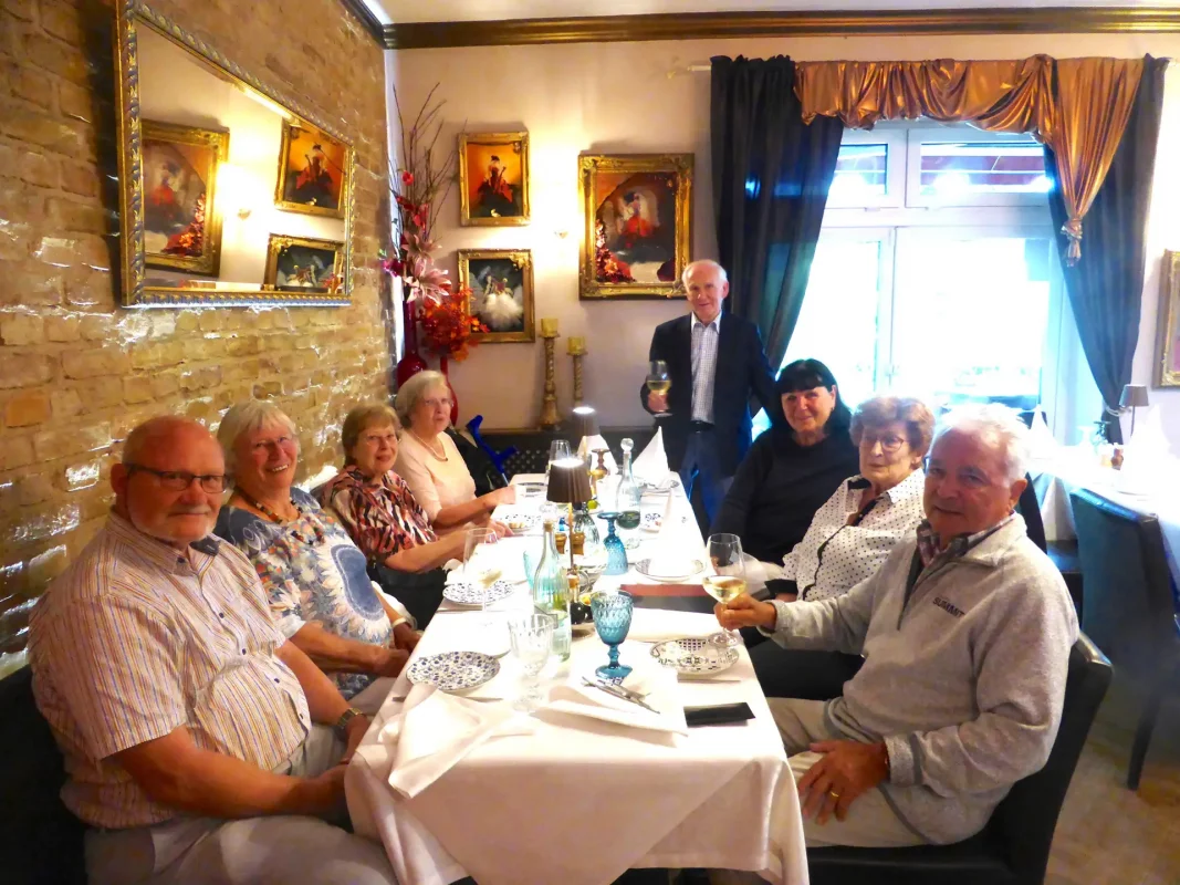 Zu einem weiteren Treffen fanden sich die Sportinteressierten im griechischen Restaurant Epavlis in der Nähe des Olympiastadions ein. Wettkämpfe standen nicht auf dem Programm. Das Aussehen des Lokals glich nicht dem einer Taverne. Es wirkte lauschig wie in einer gutsituierten Wohnung mit Bildern und Kunstwerken. „Das Essen war so griechisch, wie wir es erwartet hatten.“