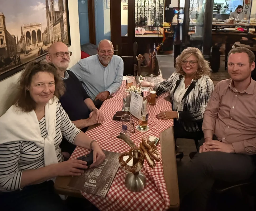 München. Im Sommer traf sich die Münchener Runde gleich mehrmals. Eines der Treffen fand im historischen, nach mehrjähriger Restaurierung wiedereröffneten Restaurant des Hofguts Menterschwaige mit wunderschönen, am Isarhochufer gelegenem Biergarten statt. Im August traf sich im Waldgasthof Buchenhain eine gutgelaunte Runde bei gutem Essen zu einem entspannten und fröhlichen Treffen. Da nach den Anstrengungen des Oktoberfestes großer Urlaubsbedarf herrschte und zudem auch noch die übliche „Wiesn-Grippe“ München fest im Griff hatte, war es Anfang Oktober nur eine kleine Gruppe, die sich bei Oliver Wendel (Jahrgang 96/98) im „Augustiner am Platzl“ zum Stammtisch traf. Es fand ein reger Austausch mit Uwe Genz und seiner Frau statt, die extra zu diesem Termin angereist waren.