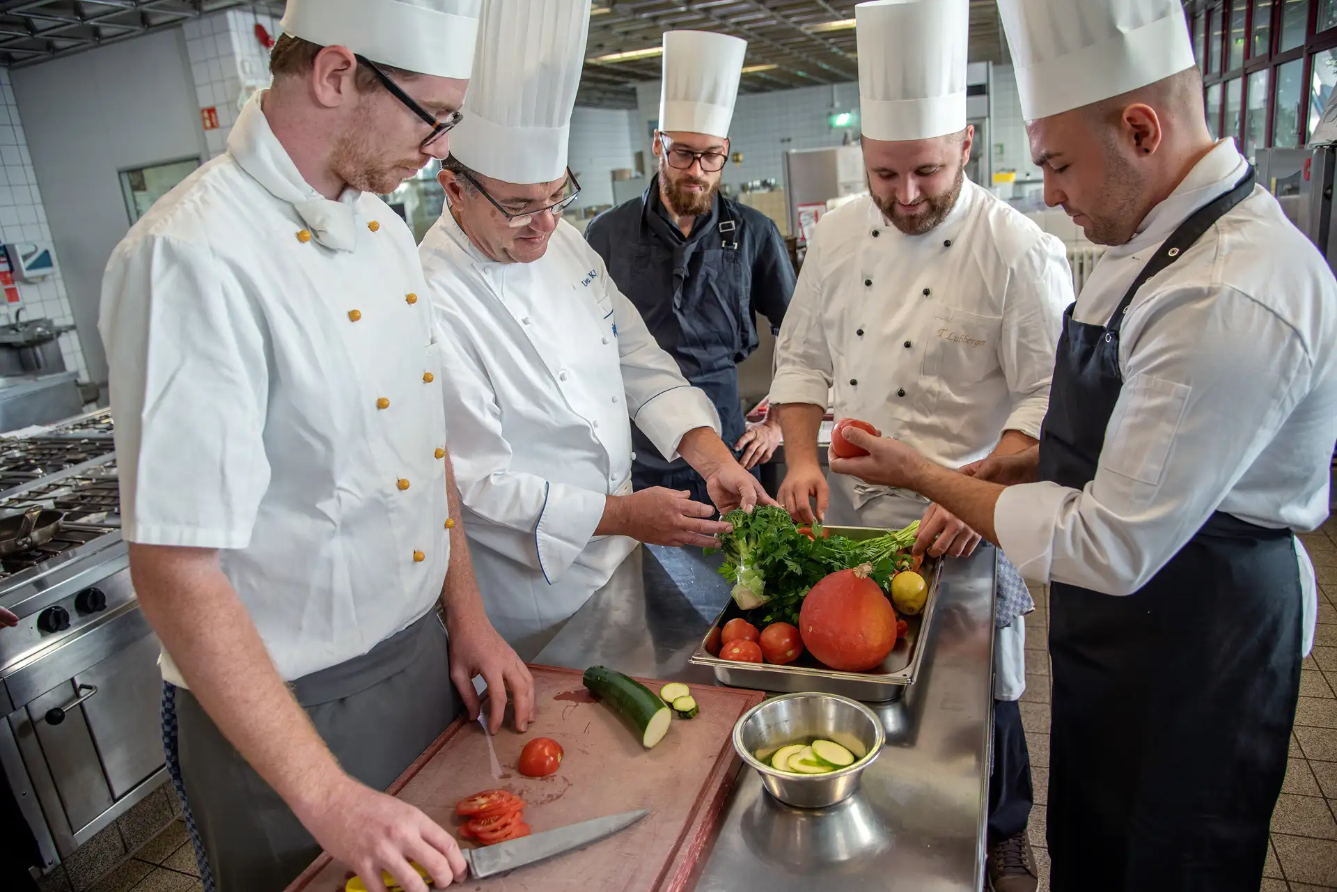 Der langjährige Fachlehrer, Küchenmeister und selbst Absolvent der Hotelfachschule Hubert Krieg wird in den Ruhestand verabschiedet, dafür kommen zum Abschlussball 2018 zahlreiche Ehemalige und Sterneköche, die ein legendäres Neun-Gang-Menü zaubern.